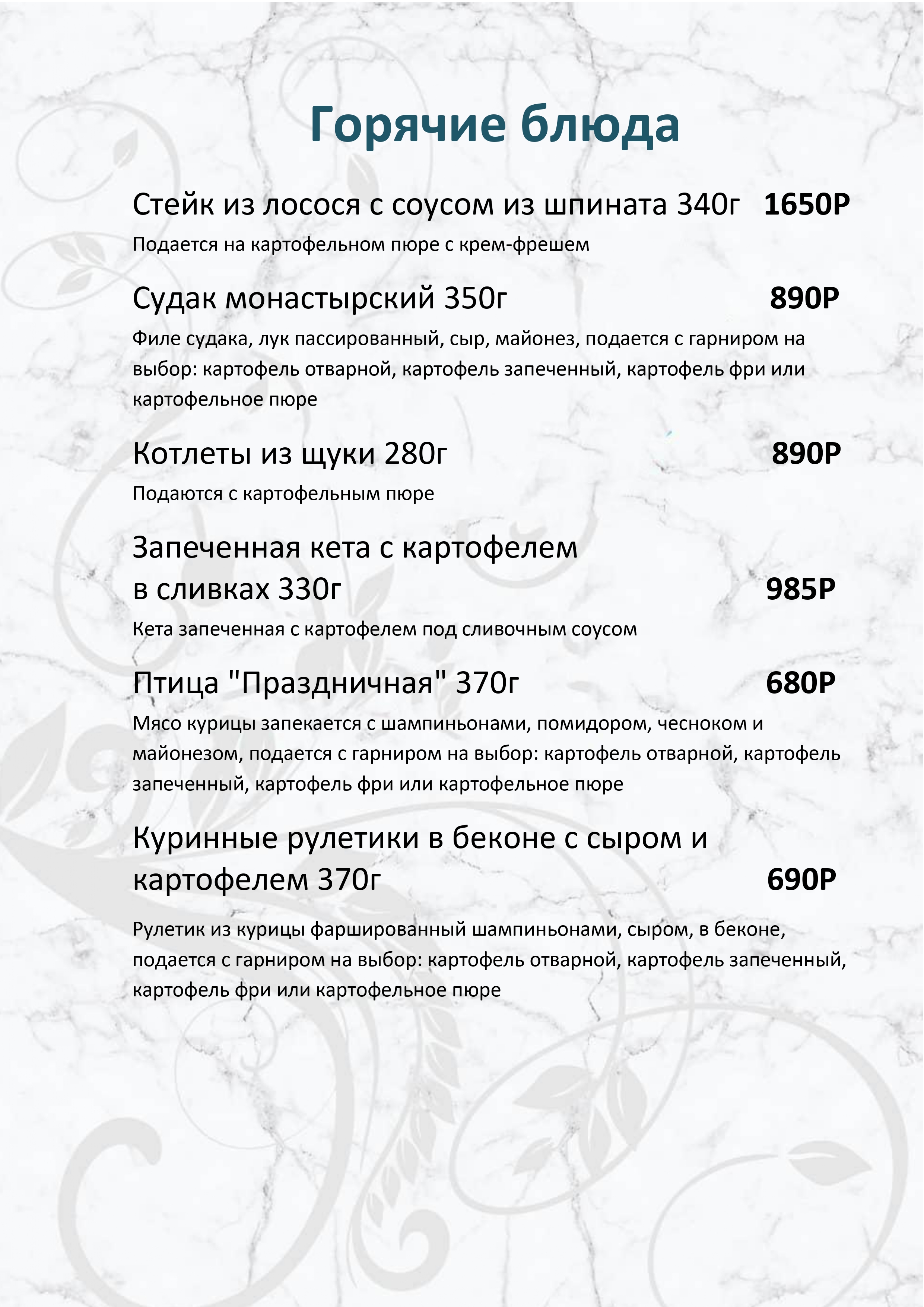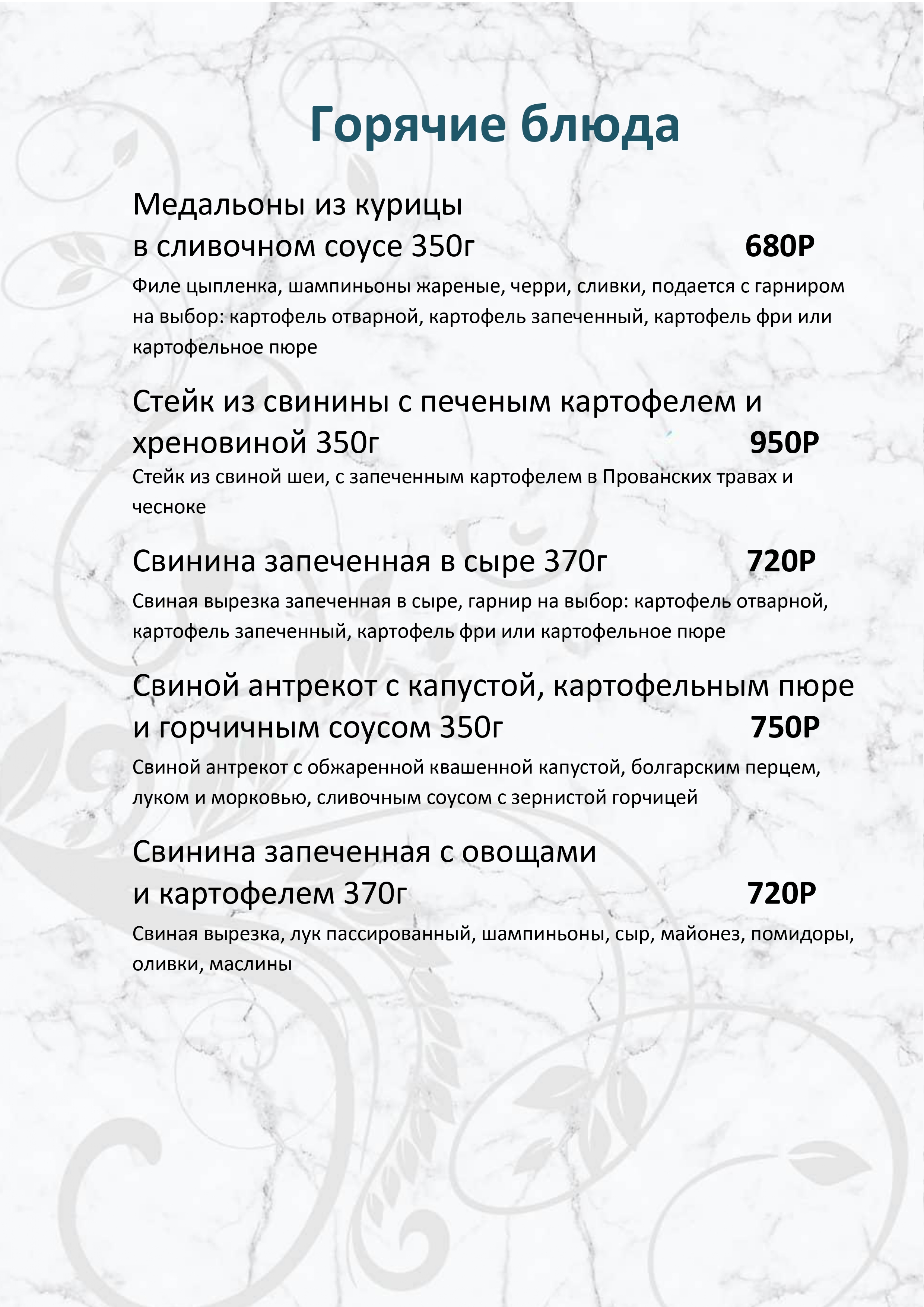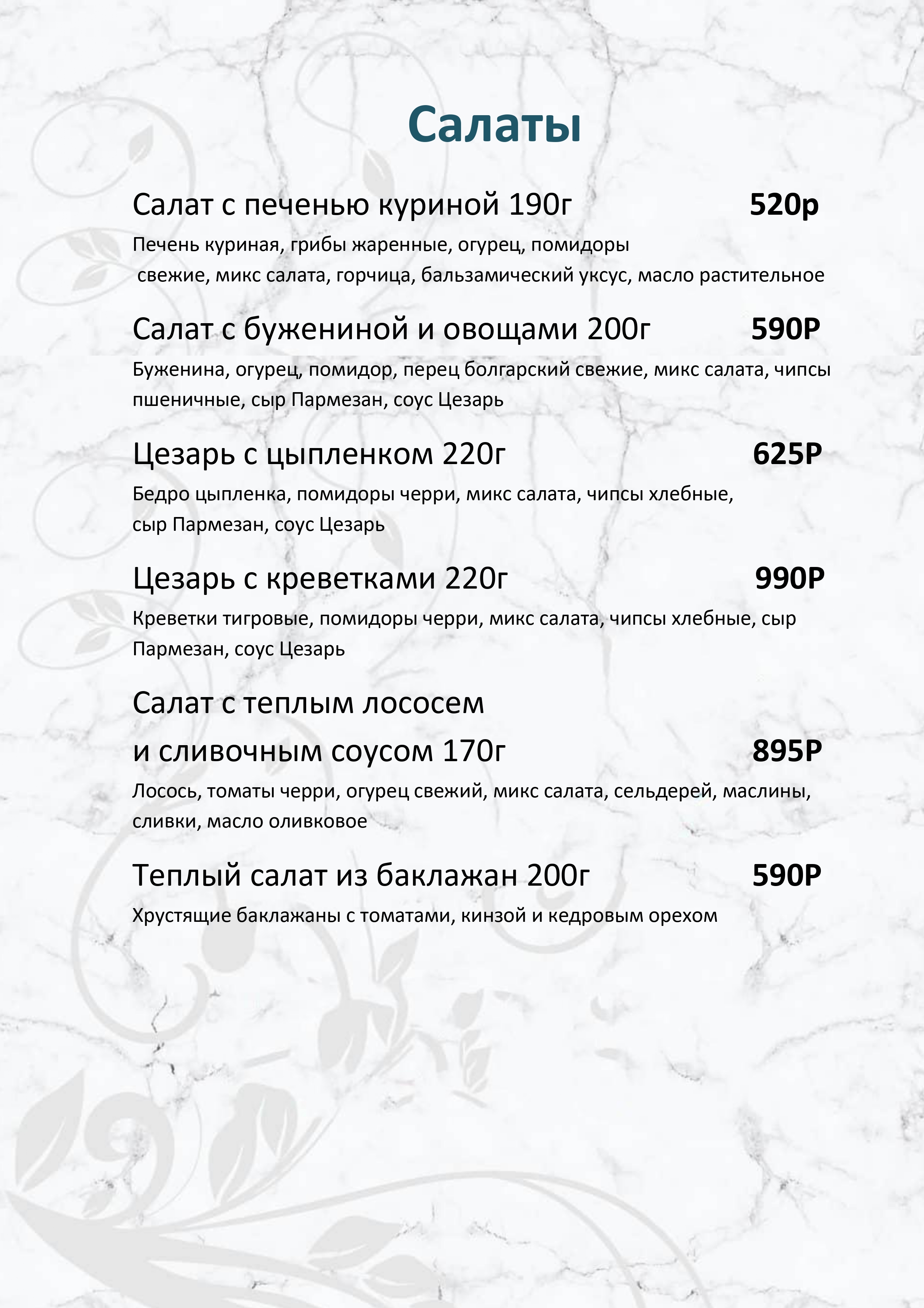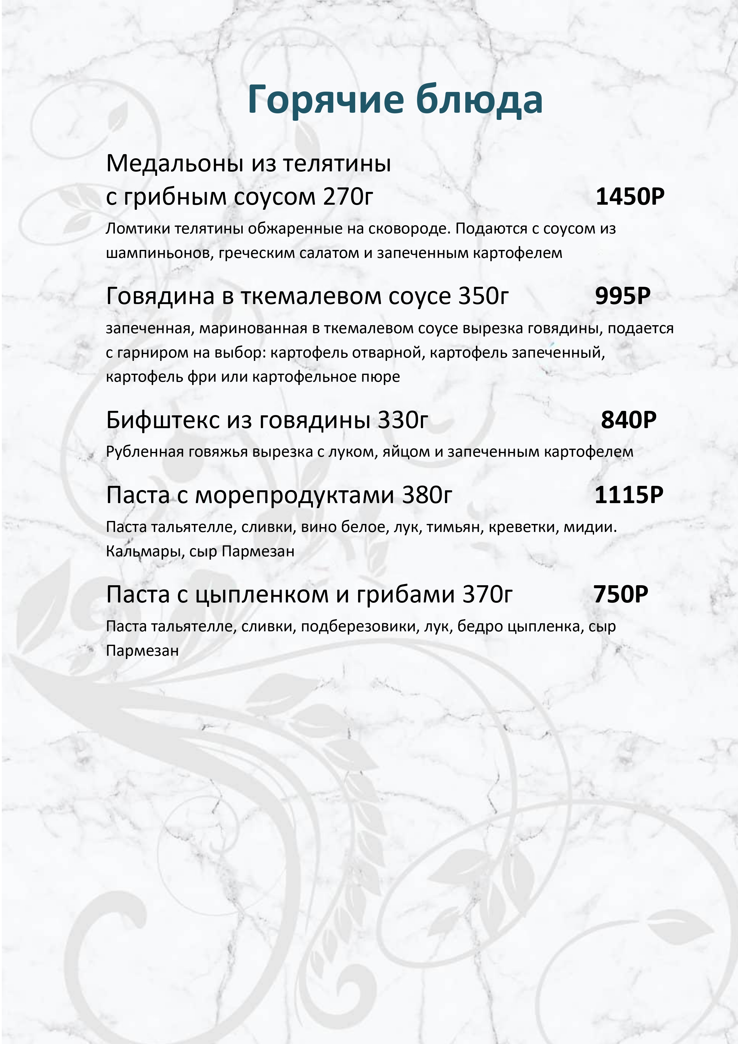 Меню ресторана