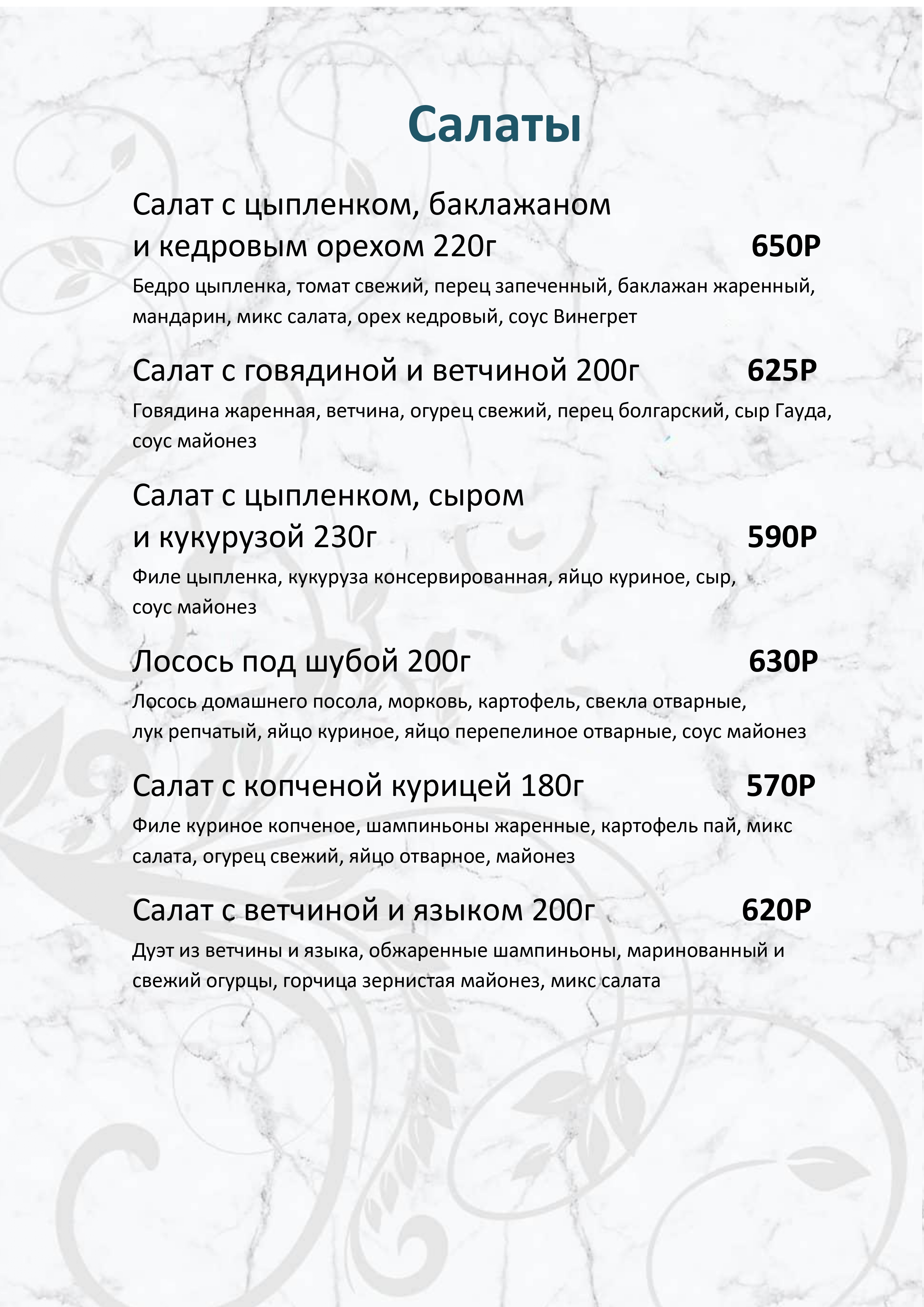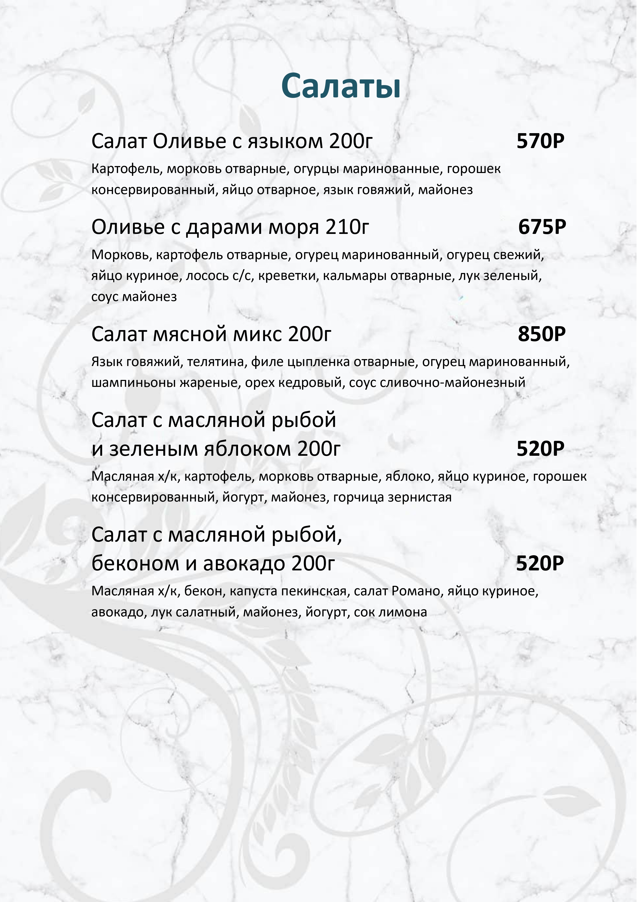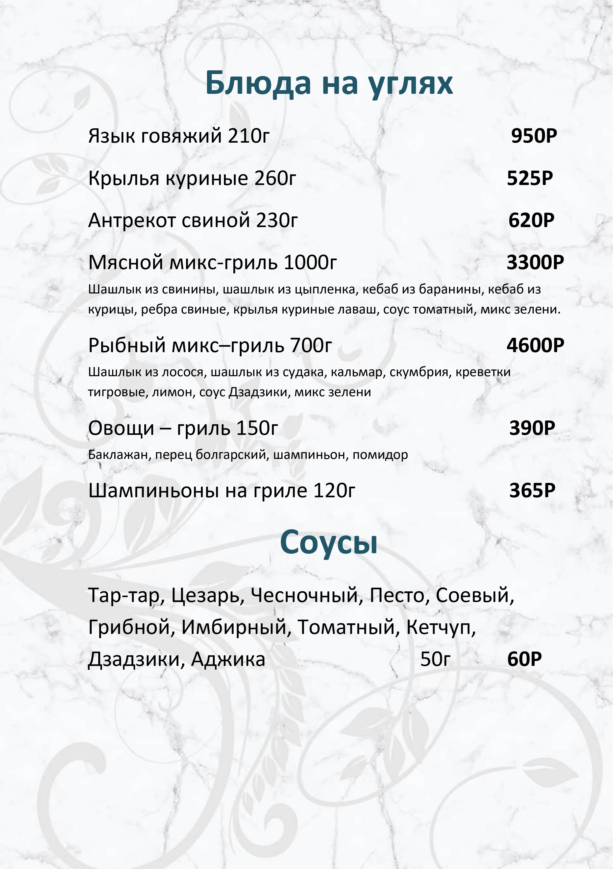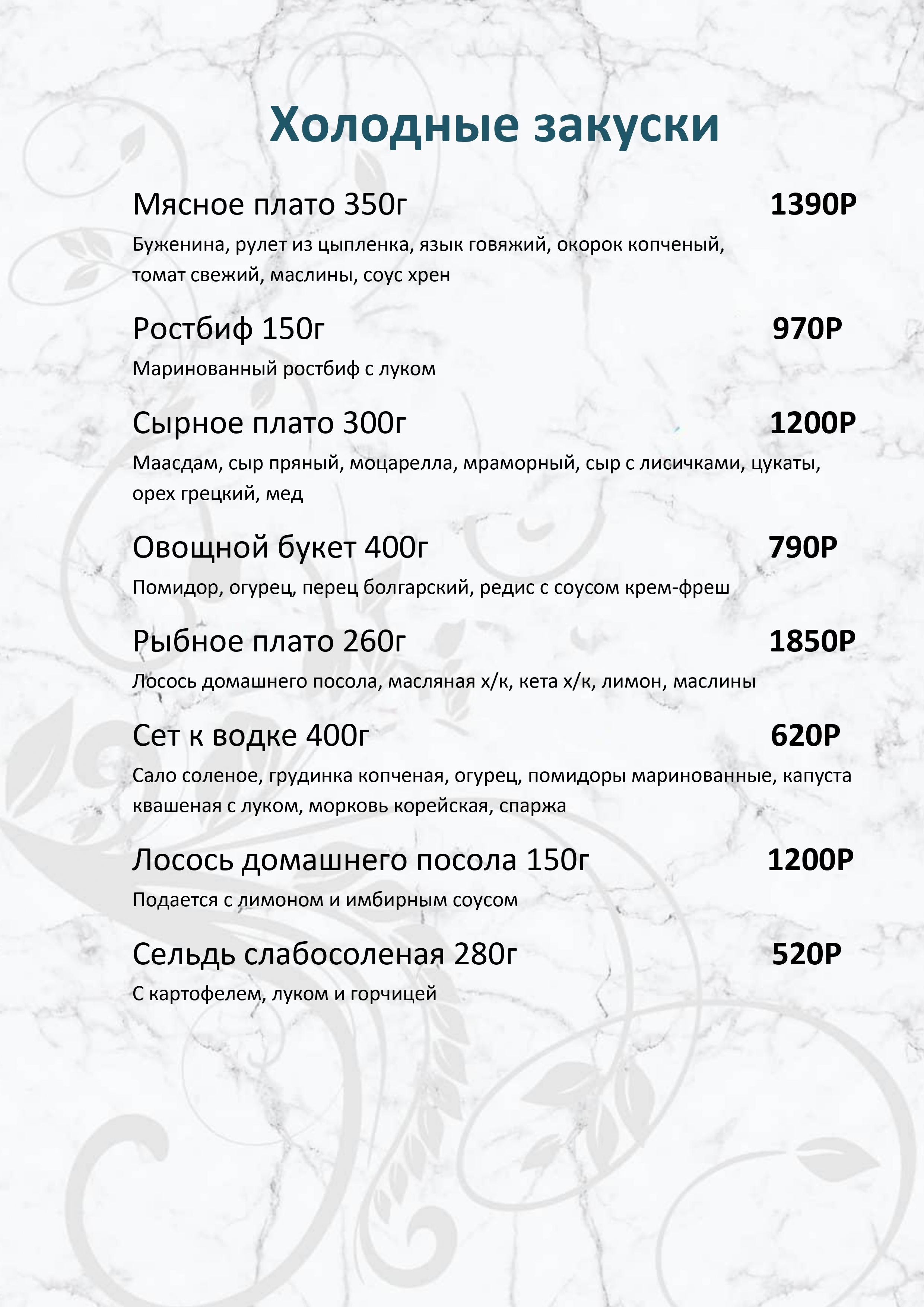 Меню ресторана