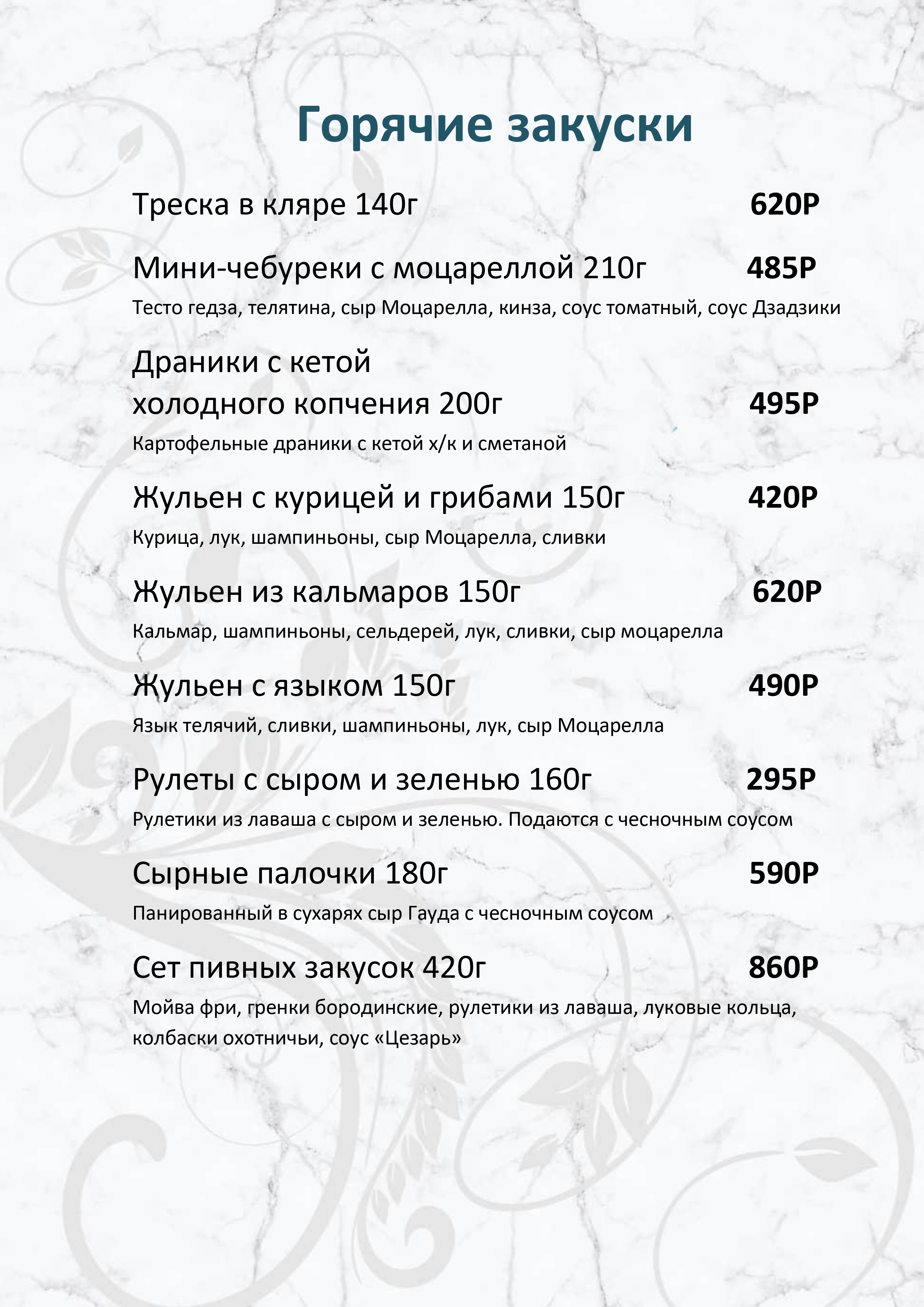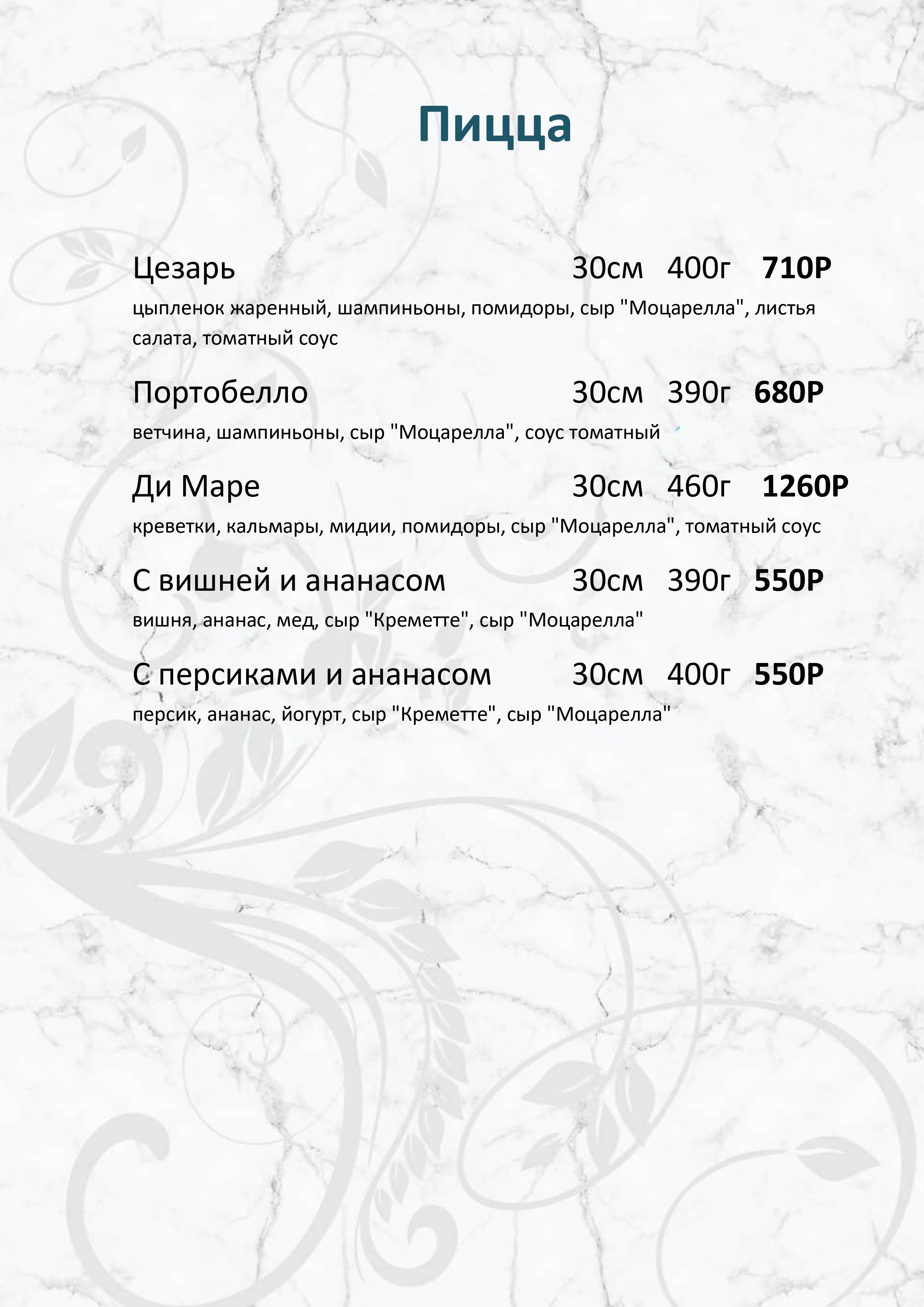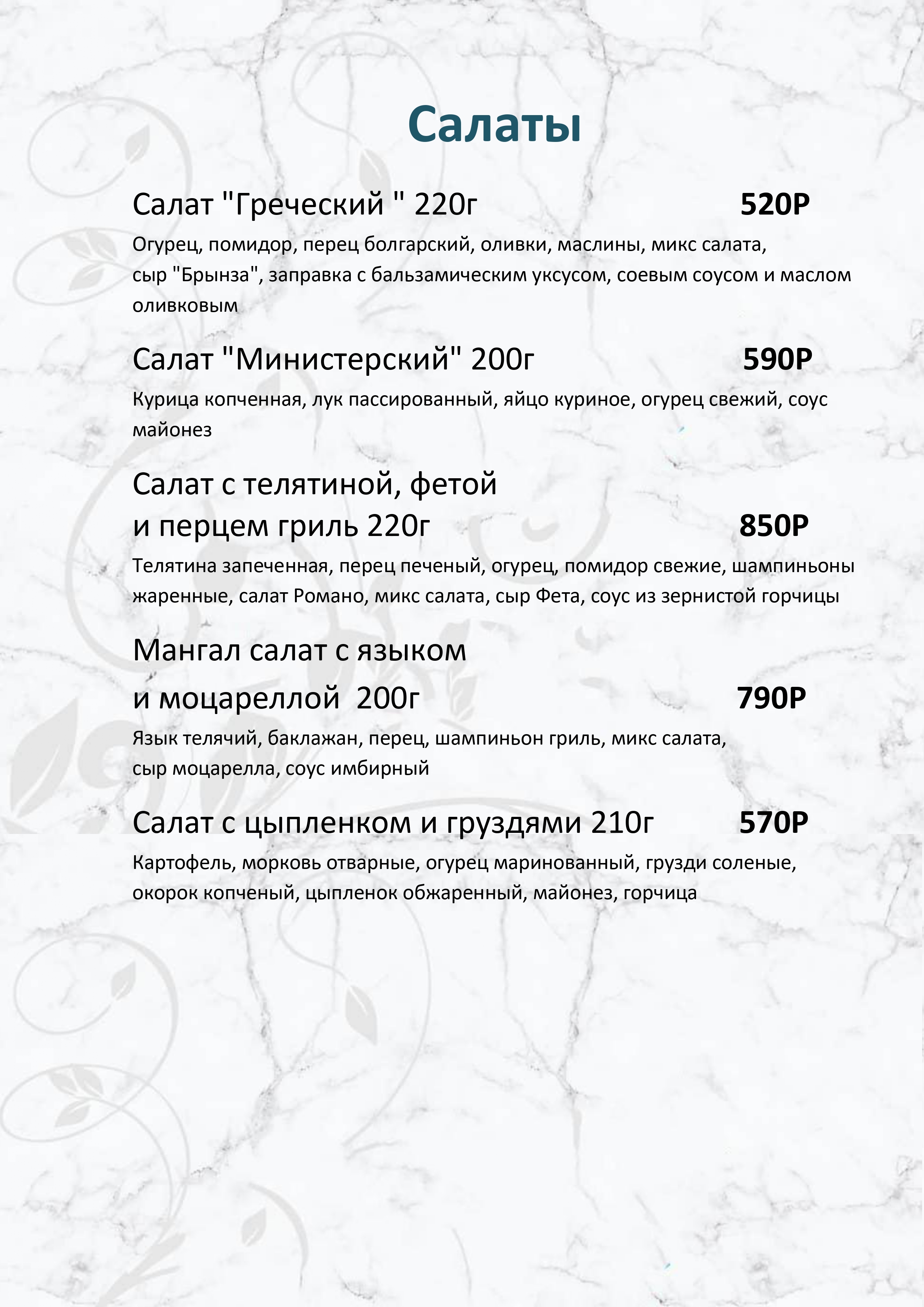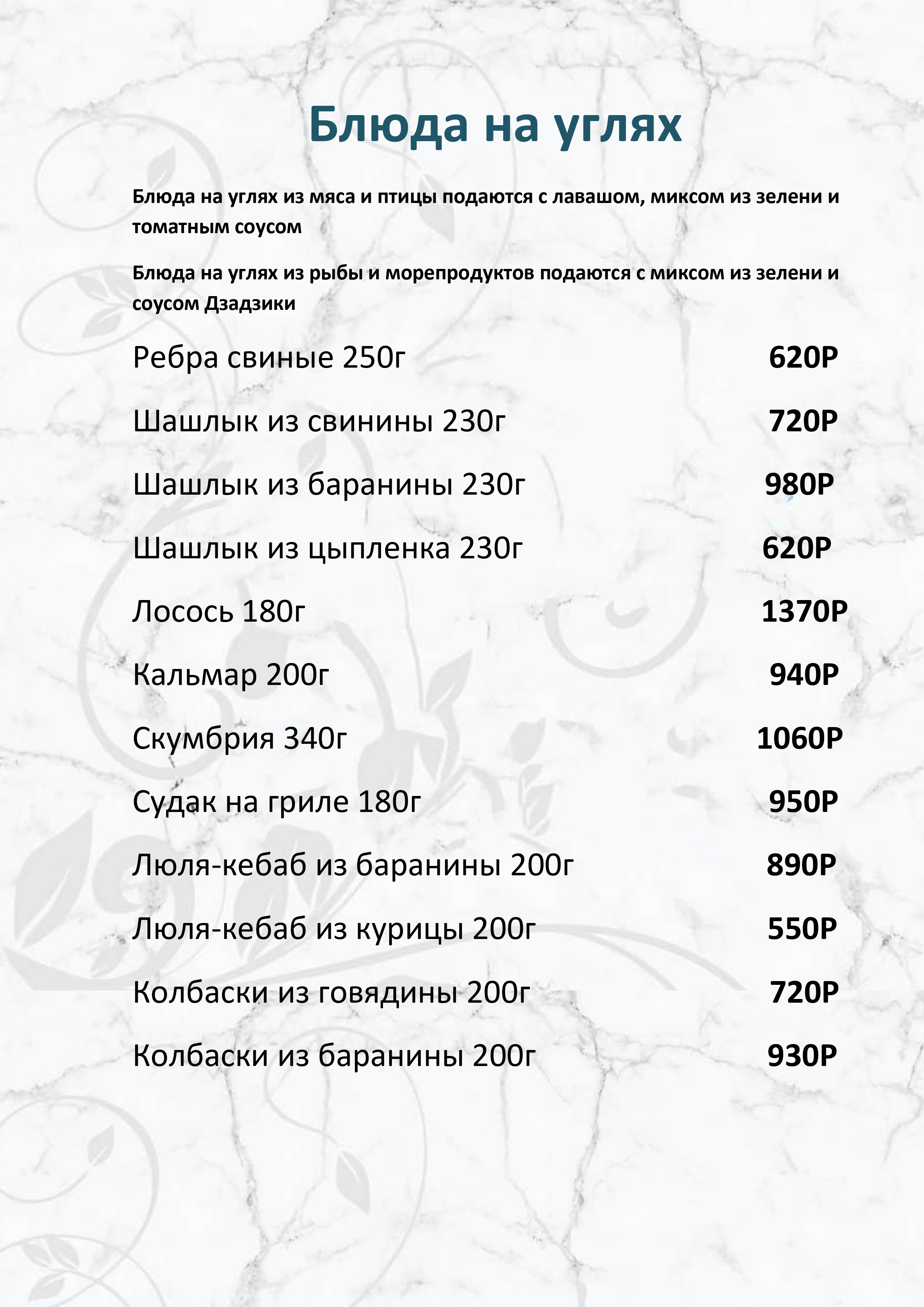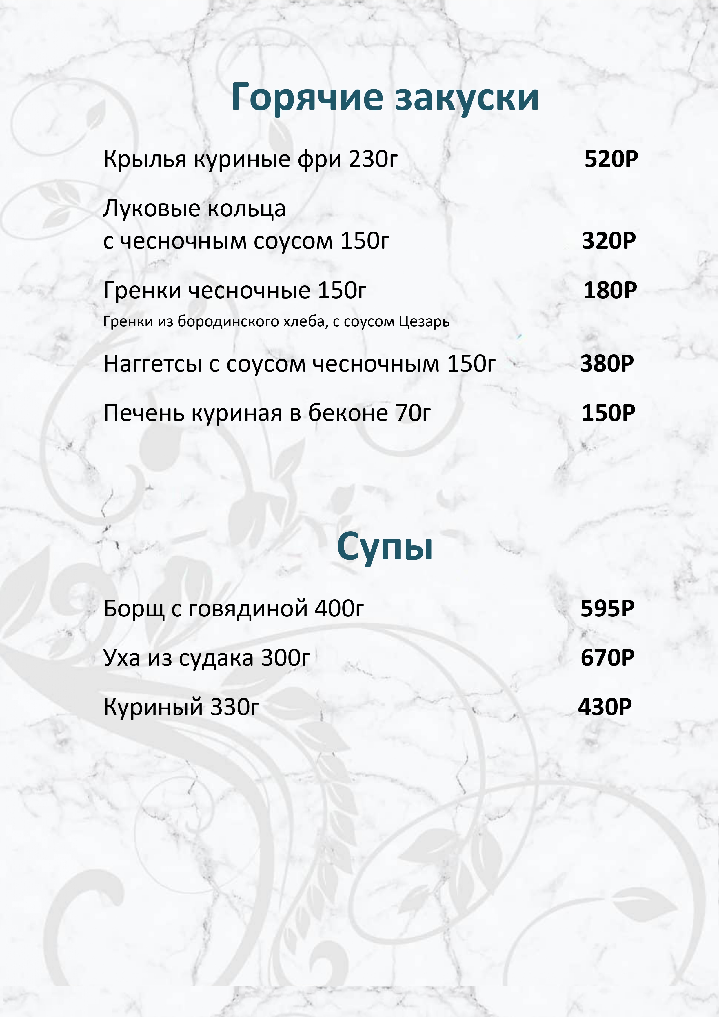 Меню ресторана