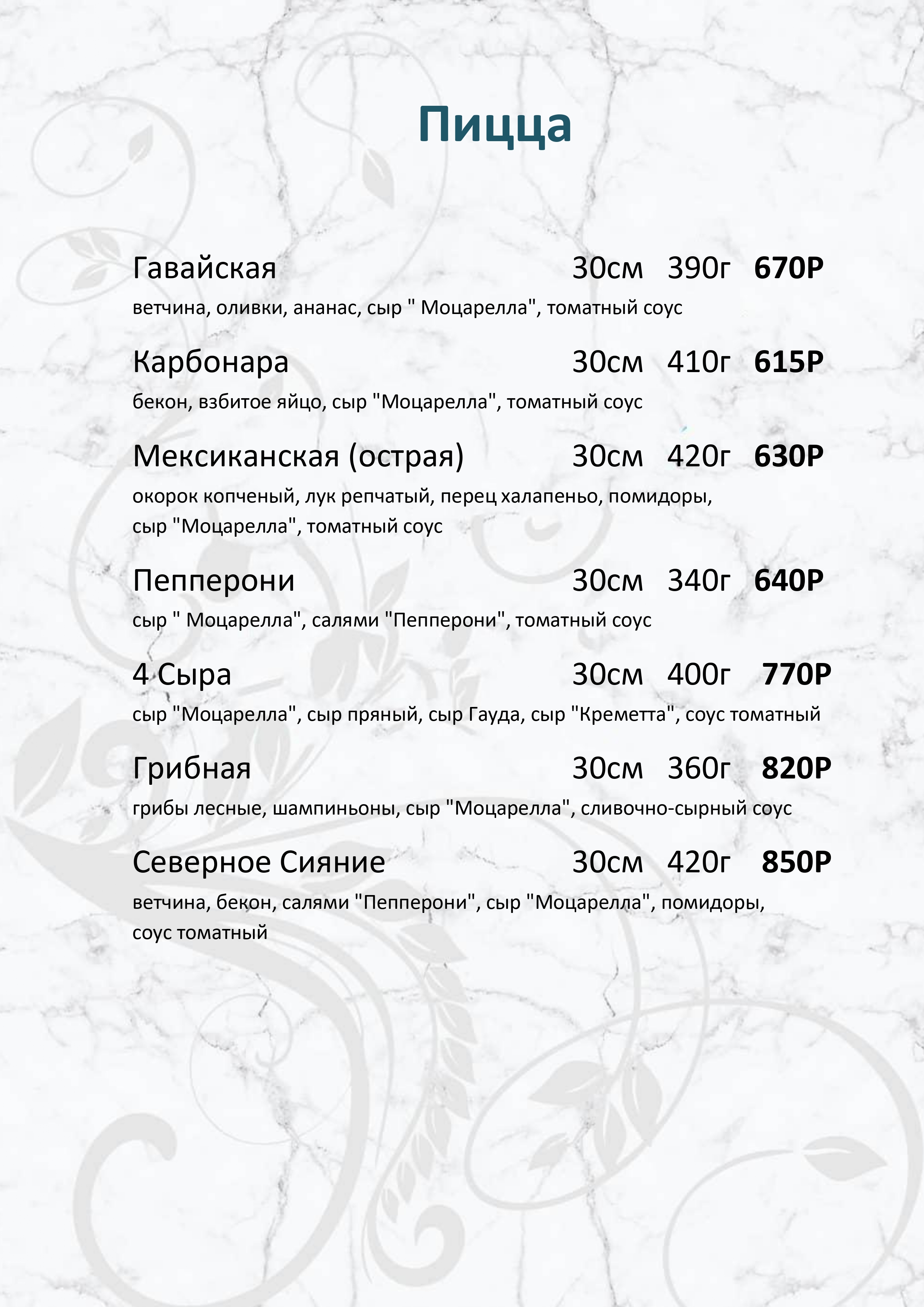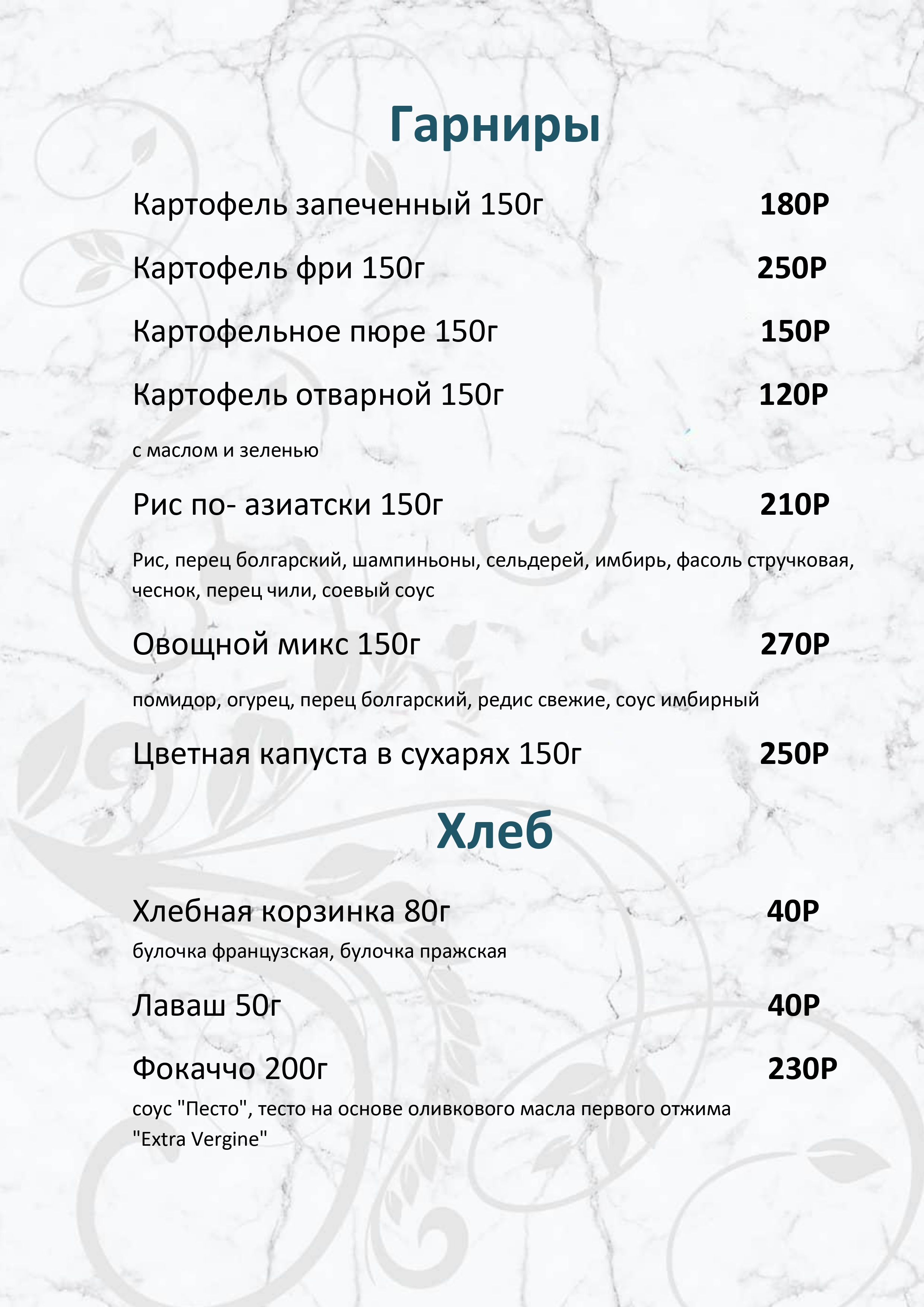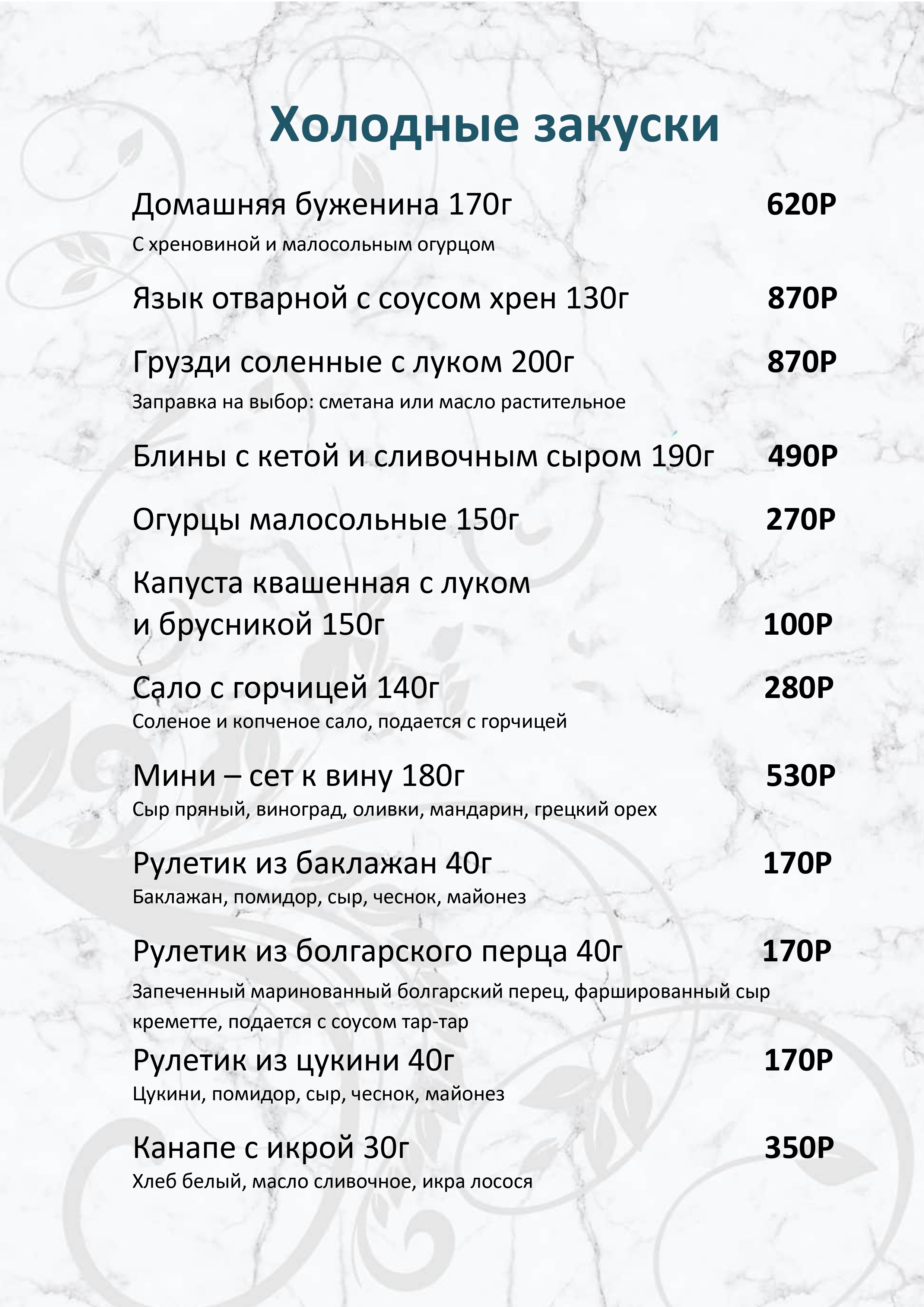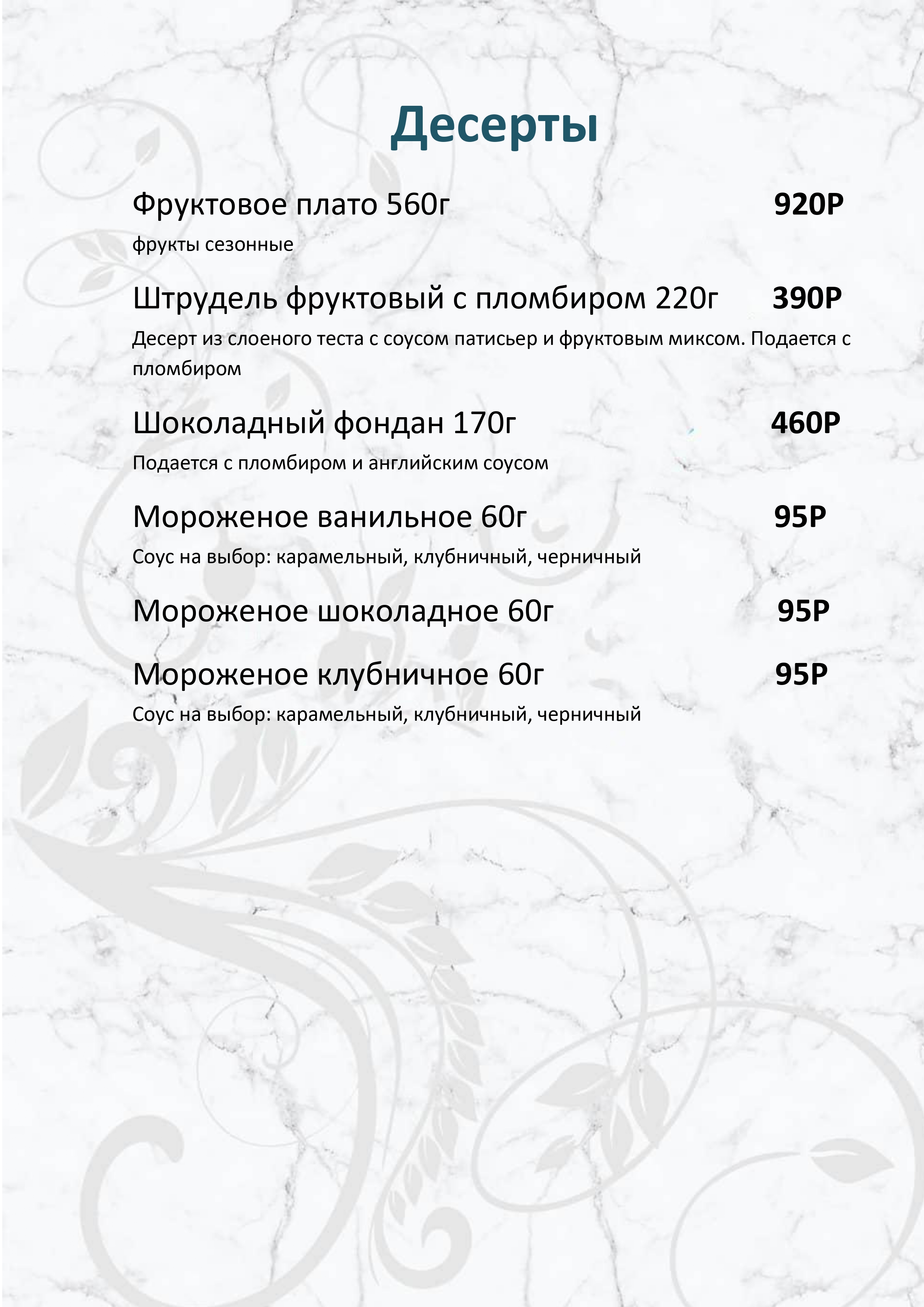 Меню ресторана